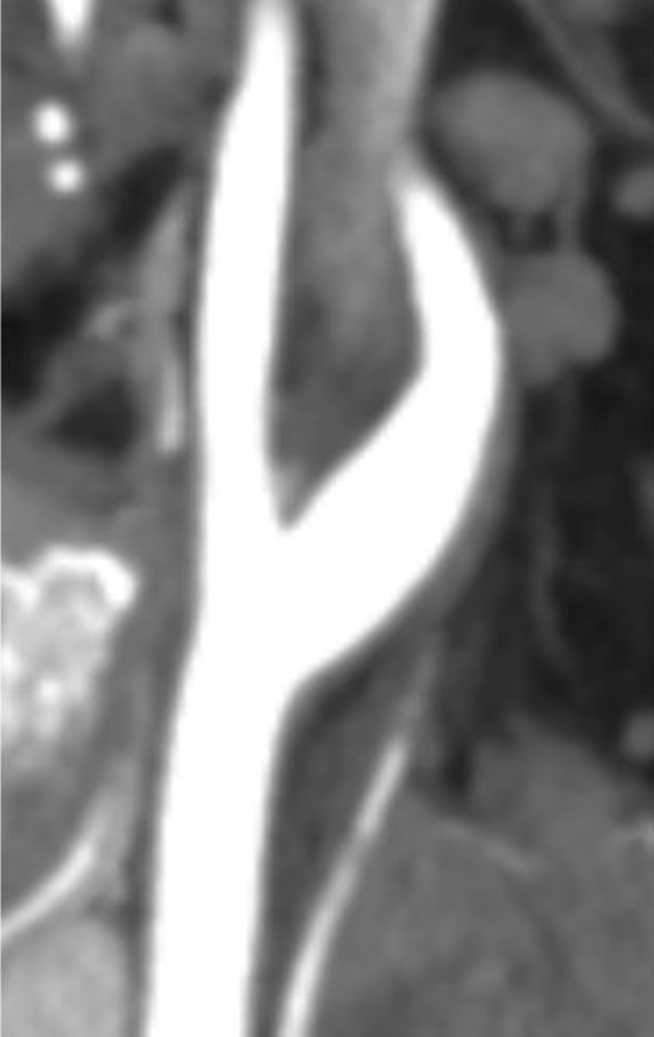 CW is a subtype of fibromuscular dysplasia wherein the pathological tissue shows few changes in the media and is mainly characterized by fibrous hyperplasia of the intima [4, 8]. The diagnosis of CW is often based on morphology as seen on radiographic imaging. Cerebral angiography and CTA are useful diagnostic tools [9], typically revealing a contrast defect caused by a shelf-like structure on the posterior wall of the origin of the ICA, with blood flow pooling on the rostral side of the structure [7, 10]. This pooling of the blood promotes thrombus formation, which can result in cerebral infarction [1]. In the present case, CTA revealed a shelf-like structure on the posterolateral wall of the origin of the ICA, and this was also seen on cerebral angiography, alongside blood flow pooling on the rostral side of the structure. These imaging findings are strongly suggestive of CW.